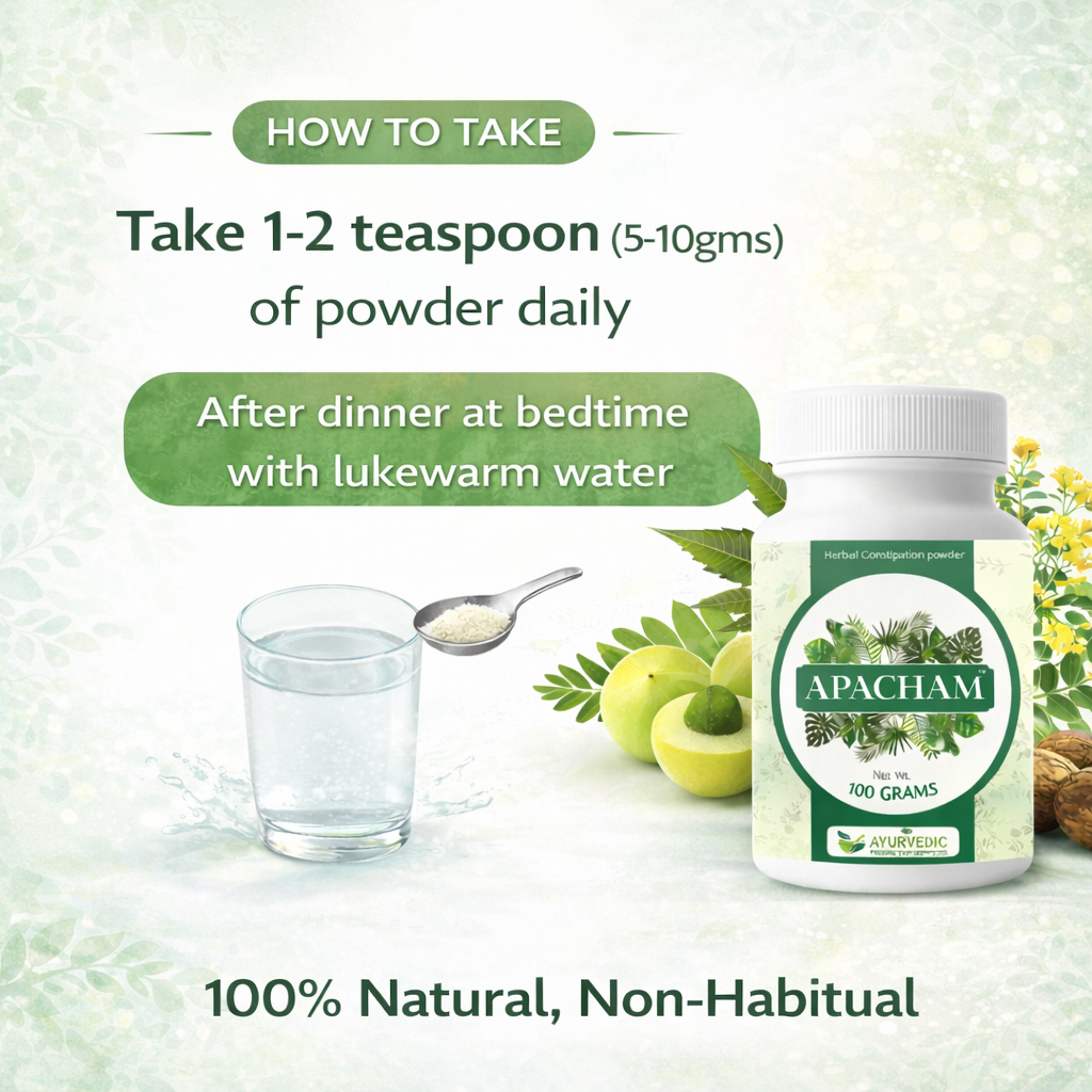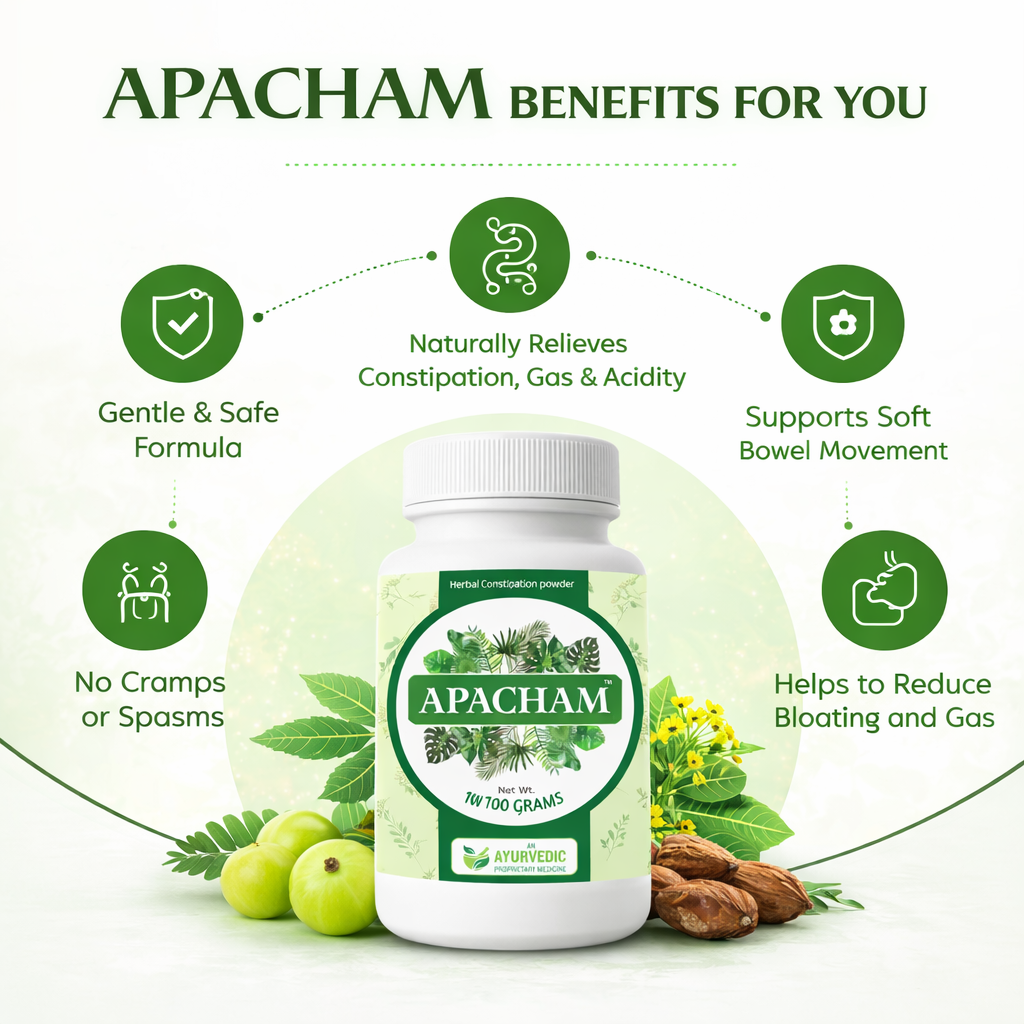Unlike chemical laxatives that create dependency and weaken intestinal muscles, Ayurvedic digestion-support powders like Apacham aim to restore natural bowel rhythm, improve digestion, and gently cleanse the intestines without shocking the system.