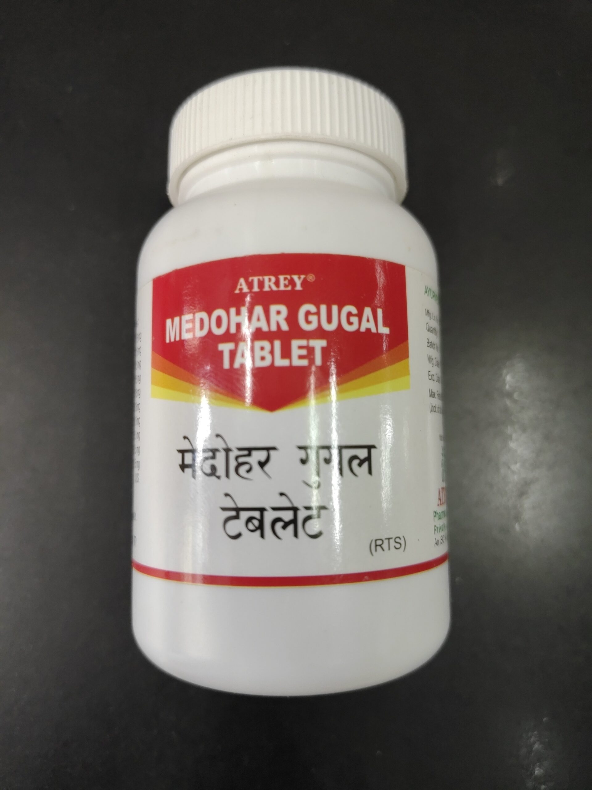 Medohar is a classical Ayurvedic anti-obesity formula that reduces excessive fat tissue, balances metabolism and prevents further fat accumulation. It helps reduce water retention, improves digestion and supports long-term weight control. Medohar is especially effective for people with heavy appetite, hormonal imbalance or slow metabolic activity.